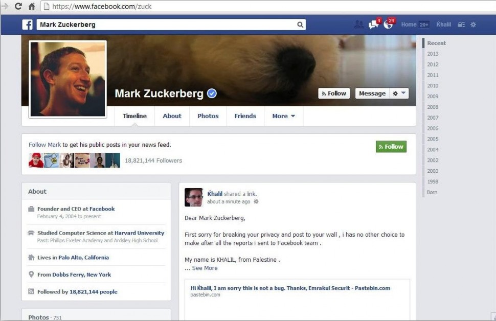 IT อัพเดทข่าวล่าสุดกับ ป๋าเอก TechXcite จากกรณีที่แฮคเกอร์นาม Khalil Shreateh ไปค้นพบช่องโหว่ทางความปลอดภัยบางอย่างใน Facebook แต่พอแจ้งเรื่องไปทีมงานกลับเงียบเฉยจนต้องยอมเอาตัวเองเข้าไปเสี่ยงด้วยการแฮ็คหน้า Wall ของ Mark Zuckerberg บอสใหญ่ของ Facebook โชว์เสียเลยว่ามันมีช่องโหว่จริงๆนะ ซึ่งแม้ว่าสุดท้ายแล้วทาง Facebook จะรับเรื่องดังกล่าวไปพิจารณาแต่สุดท้ายนาย Khalil กลับไม่ได้เงินตอบแทนใดๆเลยแม้แต่น้อยเนื่องมาจากเขาเองก็ไปทำผิดกฏของ Facebook เช่นกัน อย่างไรก็ตามก็ยังมีคนที่เห็นใจนายKhalil อยู่ไม่น้อยทีเดียวในโลกออนไลน์ ก็ถึงขนาดที่ว่าสามารถรวบรวมเงินรางวัลจากผู้ใจบุญมามอบให้ได้เลยนั่นแหละครับ!!!