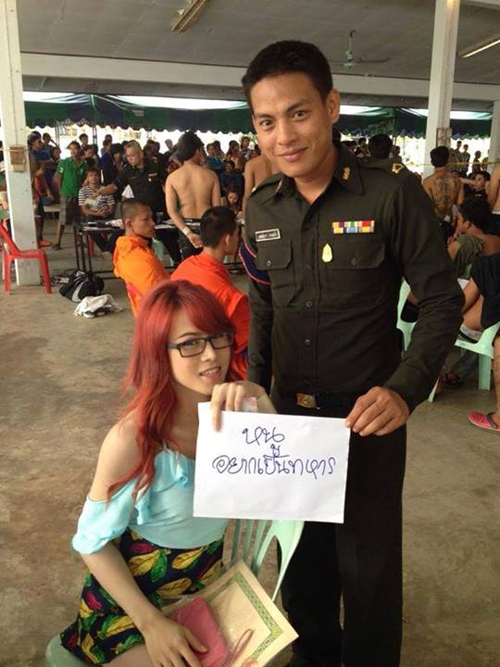 ล่าสุด วันนี้ (9 เมษายน 2557) ผู้สื่อข่าวรายงานว่า เฟซบุ๊กแฟนเพจ Drama-addict ได้ออกมาเฉลยแล้วว่า เรื่องทหารหนุ่มกับสาวประเภทสองที่ถูกสื่อประโคมข่าวนั้นเป็นเพียงมุกขำ ๆ ของเฟซบุ๊กแฟนเพจโดราแก๊กเท่านั้น โดยมีข้อความดังนี้