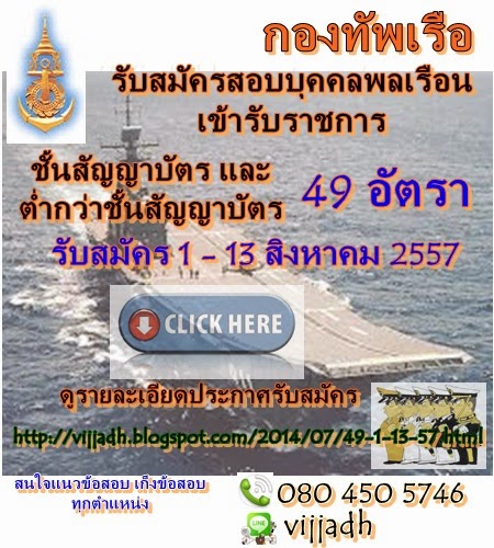 ช่าวดี++งานราชการทหาร กองทัพเรือ รับสมัครบุคคลพลเรือนเข้ารับราชการชั้นสัญญาบัตรและต่ำกว่าชั้นสัญญาบัตร 49 อัตรา รับสมัคร 1-13 สิงหาคม 57