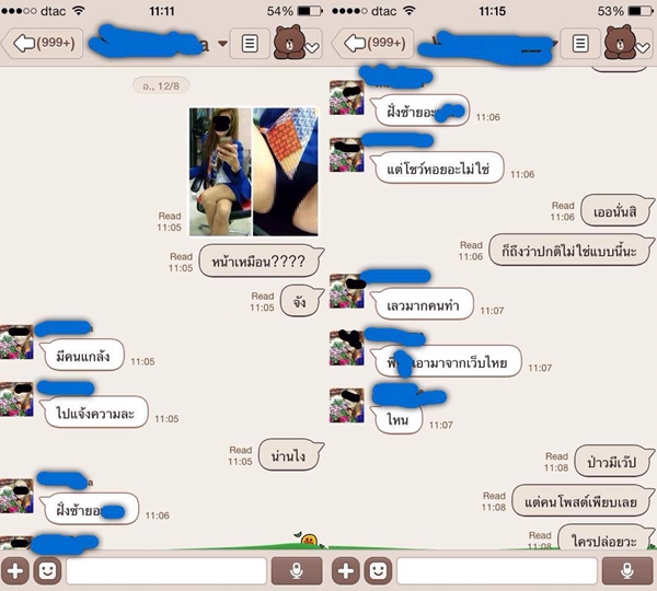 ล่าสุด เมื่อเวลาประมาณ 12.54 น. ของวันเดียวกัน เฟซบุ๊กเพจ ขอกูพูดบ้างเหอะ ได้โพสต์ภาพพร้อมข้อความในไลน์ของสาวแบงก์สีน้ำเงินคนดังกล่าวกับบุคคลหนึ่ง ว่า ภาพของสาวแบงก์สีน้ำเงินที่ถูกส่งต่อในโลกออนไลน์ จนเกิดกระแสวิพากษ์วิจารณ์อยู่ในขณะนี้นั้น เป็นภาพที่ถูกผู้ไม่หวังดีตัดต่อ พร้อมระบุว่า ภาพที่นั่งไขว่ห้างพร้อมกับยกโทรศัพท์ขึ้นมา ................... อ่านต่อคลิ๊กที่นี่ ไม่แสดงโฆษณา detail (เนื้อหานี้ จะลบตัวเองภายใน 24 ชม. หากใครต้องการอ่านเนื้อหาจะลิงค์ไปยังที่มาต้นฉบับ)