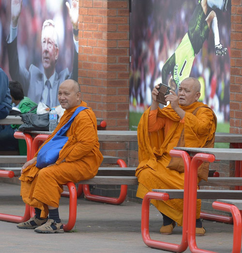 เมื่อวันที่ 21 สิงหาคม 2557 เว็บไซต์มิร์เรอร์ของอังกฤษ เผย ภาพสุดอึ้งที่ช่างภาพบันทึกได้ในบริเวณสนามโอลด์ทรัฟฟอร์ด เมื่อพระสงฆ์พุทธในจีวรเหลืองเด่น ได้ปรากฏตัวที่เมกะสโตร์และพิพิธภัณฑ์หน้าสนาม ในช่วงที่มีการท้าแข้งระหว่างแมนเชสเตอร์ ยูไนเต็ด กับสวอนซี เมื่อสุดสัปดาห์ที่ผ่านมา