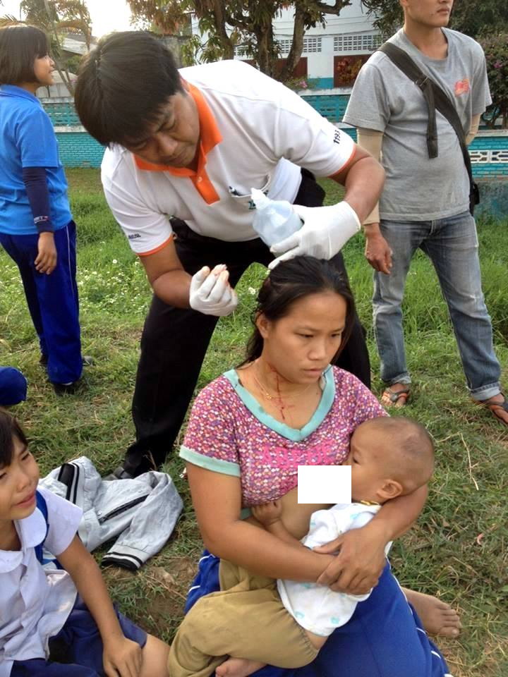 ..ภาพที่เห็นทำให้เจ้าหน้าที่กู้ภัยน้ำตาคลอ เมื่อลูกน้อยตกใจและร้องหิวนม ผู้เป็นแม่ทั้งๆที่เจ็บอยู่ก็ได้ให้นมลูกน้อยโดยไม่สนใจความเจ็บปวด หรืออายสายตาผู้คนที่มองดูอยู่ ขอให้คุณแม่ของหนูน้อยหายจากการบาดเจ็บไวๆ พวกเราทีมกู้ภัยตำรวจทางหลวง เชียงใหม่ เป็นกำลังใจให้ครับ..