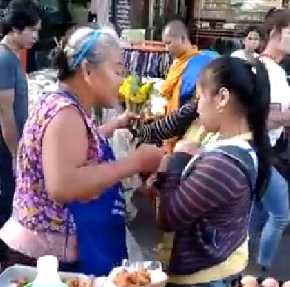 เป็นประเด็นที่มีผู้ให้ความสนใจเป็นจำนวนมาก สำหรับกรณีของ ยายยัดดอกไม้ แล้วข่มขู่บังคับเรียกเก็บเงินค่าดอกไม้จำนวน 40 บาท ที่ตลาดอ้อมใหญ่ จ.นครปฐม ซึ่งปรากฏคลิปแฉพฤติกรรมขู่กรรโชกเงินของคุณยายหลายครั้ง แต่คุณยายก็ยังไม่หยุดพฤติกรรมดังกล่าว จนเป็นที่วิพากษ์วิจารณ์อย่างมากในสังคม และล่าสุดทางสำนักงานตำรวจแห่งชาติได้สั่งให้ นายตำรวจยศพันตำรวจโท ซึ่งเป็นลูกชายของคุณยายคนดังกล่าว ช่วยเกลี้ยกล่อมให้ผู้เป็นแม่เข้ารับการตรวจทางจิตและบำบัดรักษาโดยเร่งด่วน รวมทั้งให้เฝ้าระวังอย่าให้ต้องก่อเหตุซ้ำอีกนั้น
