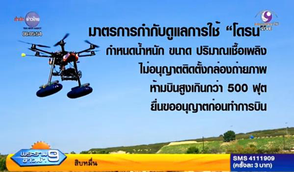 วันนี้ (27 มกราคม 2558) รายการพระราม 9 ข่าวเช้า ทางช่อง 9 รายงานว่า เมื่อวานนี้ (26 มกราคม) พล.อ.อ. ประจิน จั่นตอง รัฐมนตรีว่าการกระทรวงคมนาคม ได้สั่งการให้กรมการบินพลเรือน (บพ.) ออกประกาศเพิ่มเติมภายใต้ พ.ร.บ.การเดินอากาศ พ.ศ. 2497 เกี่ยวกับหลักเกณฑ์ในการกำกับดูแลการขออนุญาตการใช้และการปล่อยอากาศยานไร้ คนขับ หรือ โดรน เพื่อป้องกันไม่ให้การใช้งานดังกล่าวส่งผลกระทบต่อความปลอดภัยทางด้านการ จราจรทางอากาศและนำไปใช้งานที่ละเมิดสิทธิส่วนบุคคล เนื่องจากมีการนำกล้องบันทึกภาพติดตั้งไว้บนโดรนแล้วบินสอดแนมถ่ายภาพที่ไม่ เหมาะ ................... อ่านต่อคลิ๊กที่นี่ ไม่แสดงโฆษณา detail (เนื้อหานี้ จะลบตัวเองภายใน 24 ชม. หากใครต้องการอ่านเนื้อหาจะลิงค์ไปยังที่มาต้นฉบับ)