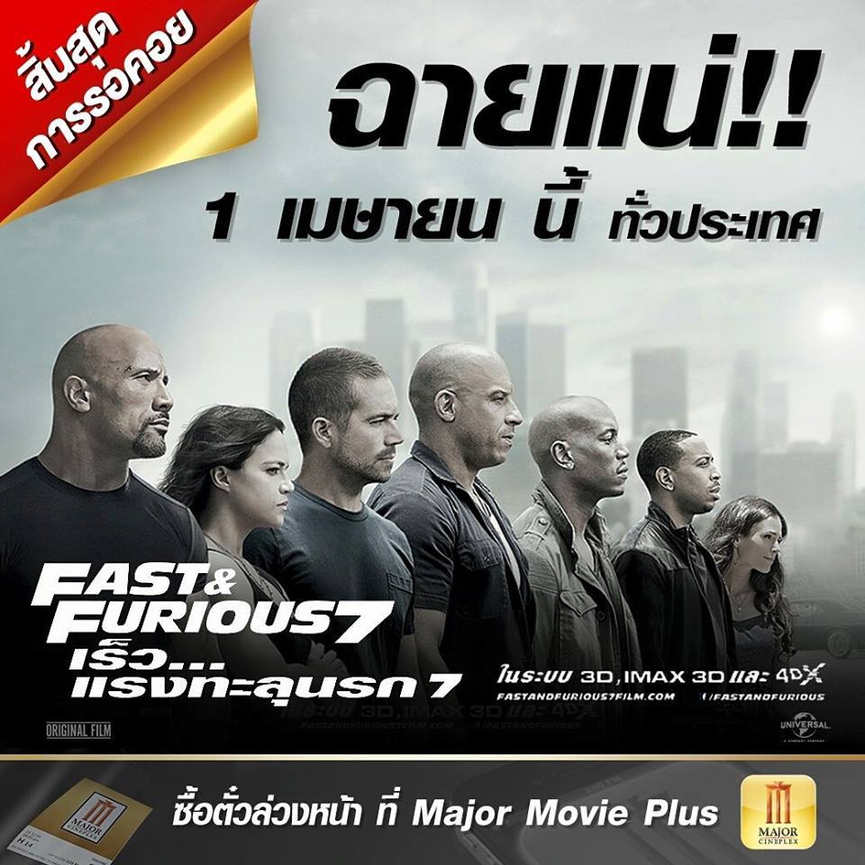 เมเจอร์ฯ ประกาศฉาย Fast & Furious 7 แน่นอน 1 เมษายนนี้ หลังศาลแพ่งมีคำสั่งยกเลิกการสั่งระงับฉาย