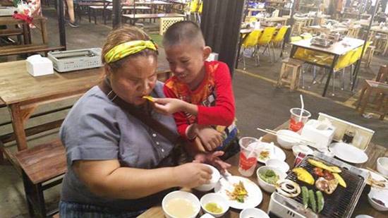 | • แม่ตาบอดพาลูกกินบุฟเฟ่ต์ปิ้งย่างครั้งแรก สาวสวยประทับใจยื่นน้ำใจช่วยเหลือ |