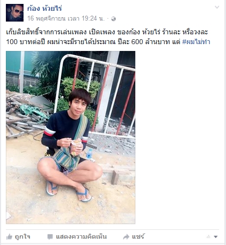 ก้องห้วยไร่ เมินเก็บเงินค่าลิขสิทธิ์ กว่า 600ล้าน บอกตายไปก้เอาไปไม่ได้