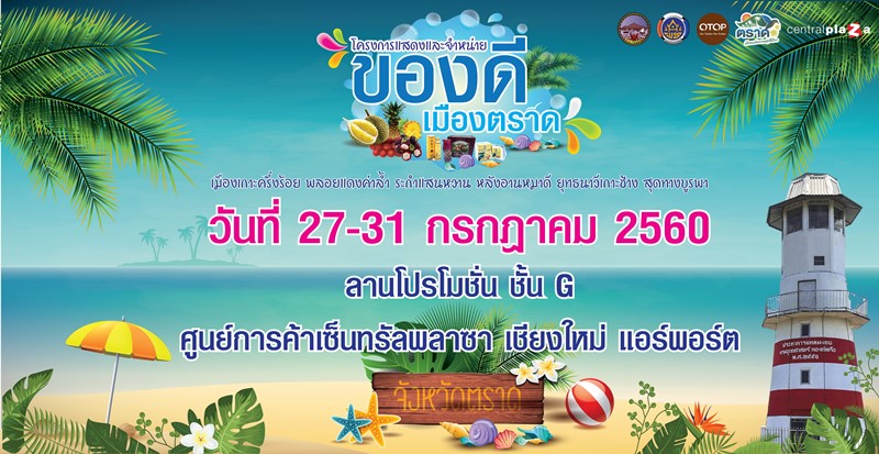 | • 27-31กรกฎา60 แอ่วงานของดีเมืองตราด ณ ลานโปรโมชั่น ชั้น G ศูนย์การค้าเซ็นทรัลพลาซา เฃียงใหม่ แอร์พอร์ต |