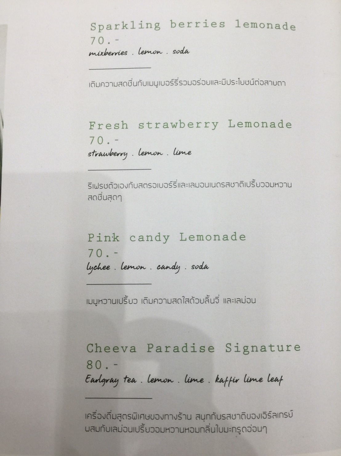 เมนู อาหารและเครื่องดื่ม ในร้าน ชีวิตชีวา