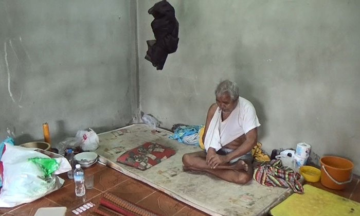 ตาวัย 80 ปี ลื่นล้มจนพิการ ถูกญาติหลอกพามาไว้ที่วัด อาศัยห้องเก็บของข้างเมรุ