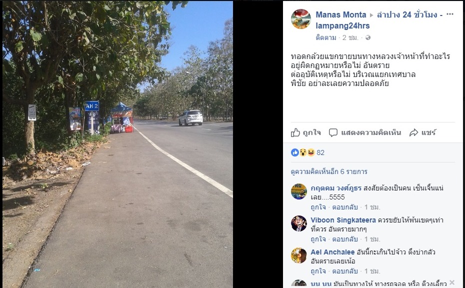 ลำปาง**อย่าละเลยความปลอดภัย ขายกล้วยแขกริมถนน บริเวณแยกเทศบาล พิชัย