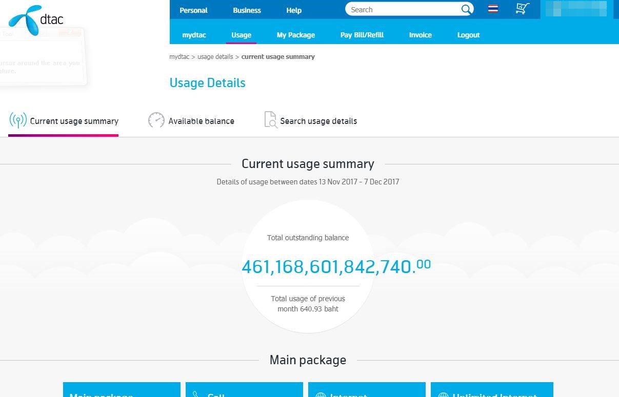 จากการที่ผู้ใช้บริการของดีแทคระบบรายเดือนบางท่าน ได้รับการแจ้งค่าใช้บริการสูงเกินจริง เนื่องจากระบบการแสดงยอดค่าบริการขัดข้องชั่วคราว เมื่อวันที่ 7 ธันวาคม ในช่วงเวลา 17.00-18.00 น. ส่งผลให้ผู้ใช้บริการบางท่าน เฉพาะผู้ใช้บริการในประเทศ ไม่สามารถโทรออกได้บางช่วงเวลา แต่ยังรับสายได้ตามปกติ ดีแทคได้รีบทำการตรวจสอบและแก้ไขปัญหานี้อย่างเร่งด่วน จนผู้ใช้บริการสามารถโทรออกและรับสายได้ตามปกติ และระบบการแสดงผลยอดค่าบริการได้รับการแก้ไขและมีการแสดงยอดถูกต้องแล้วในช่วงเวลา 18.00 น. วันเดียวกัน