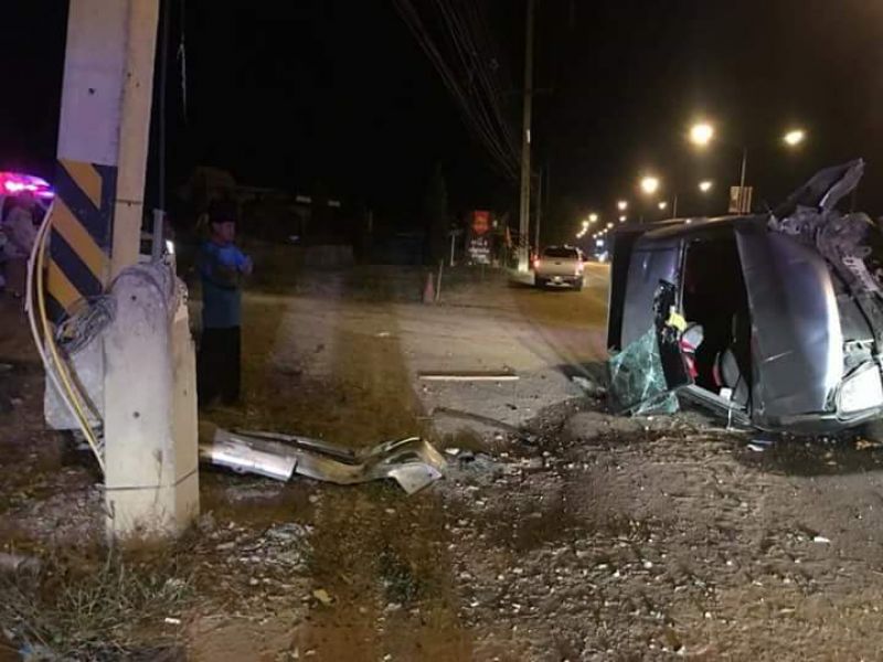 กระบะชนเสาไฟฟ้าแหล่ว บาดเจ็บเล็กน้อย @จอมทองเชียงใหม่