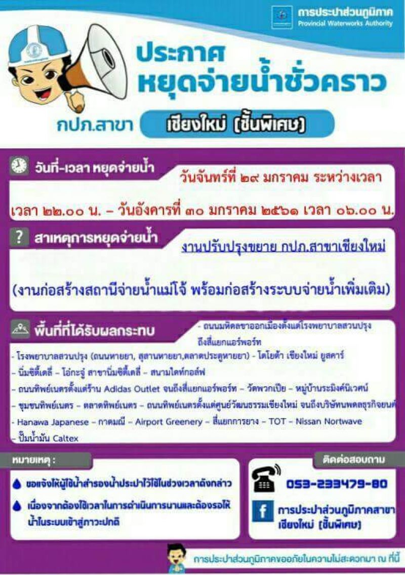 ประกาศ การประปาส่วนภูมิภาคสาขาเชียงใหม่ (ชั้นพิเศษ)
