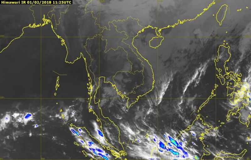 รายงานการติดตามสภาวะอากาศเมื่อเวลา 19.00 น (วันพฤหัสบดีที่ 1 กุมภาพันธ์ พ.ศ. 2561)