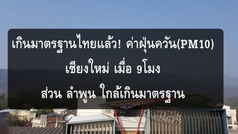 | • เกินมาตรฐานไทยแล้ว! ค่าฝุ่นควัน(PM10) เชียงใหม่ เมื่อ 9โมง ส่วน ลำพูน ใกล้เกินมาตรฐาน |