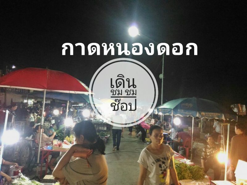 ตลาดหนองดอกช่วงค่ำเปิดตั้งแต่ 6 โมงเย็นจนถึงดึกและเปลี่ยนผลัดไปจนเช้า ใครอยากมาเดินเล่นชมชิมชอปได้ตามสบายเลยครับ