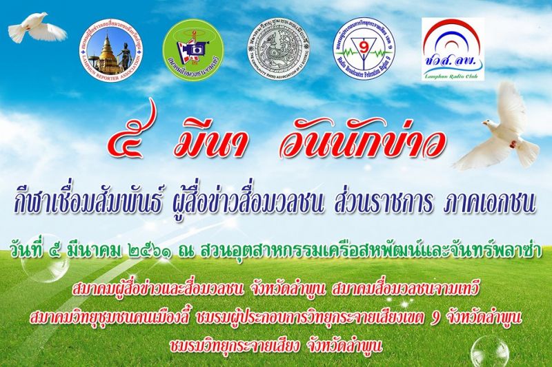 5 มีนาคม ทุกปีตรงกับวันนักข่าว   และปีนี้ ทางชทรมนักข่าวลำพูน พร้อมด้วยหลายภาคส่วน ก้ได้จัดกิจกรรม เหมือนดังเดิม ทุกปี เช่นกัน โดยครั้งนี้ จัดที่ สวนอุตสาหกรรมเครือสหพัฒน์และจันทน์พลาซ่า   โดยจะมีการทำบุญให้นักข่าวผู้ล่วงลับ ในเวลา 8.00น. ที่  วัดจามเทวี   และในตอนเย็นจะมีกิจกรรมเชื่อมความสัมพันธ์ ณ สวนอุตสาหกรรมเครือสหพัฒน์และจันทน์พลาซ่า