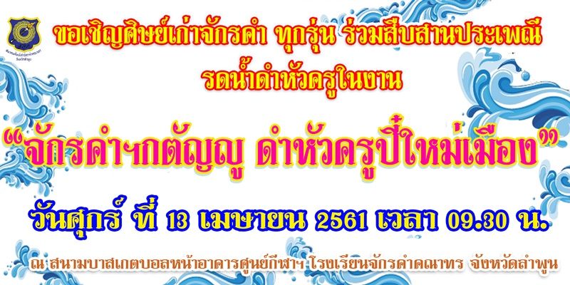 13 เมษา เชิญศิษย์เก่าจักรคำฯ ดำหัวครูปี๋ใหม่เมือง ร่วมรำลึกเคยเรียน เคยเล่น เคยสร้างวีรกรรม