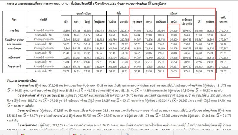 | • อึ้ง! โอเน็ตม.6ทั่วประเทศ เฉลี่ยแล้ว ไม่ถึงครึ่ง! ภาคเหนือต้นๆ ของประเทศ เกินค่าเฉลี่ยทุกวิชา |