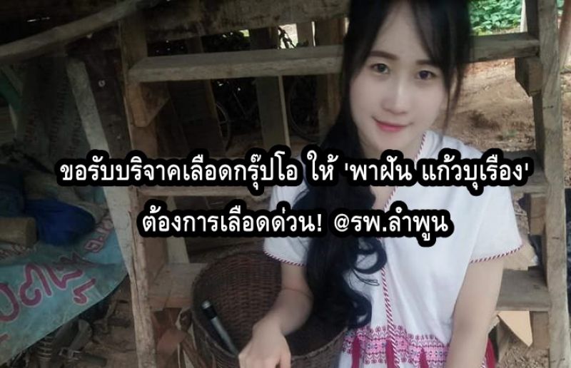 ขอรับบริจาคเลือดกรุ๊ปโอ ให้ 'พาฝัน แก้วบุเรือง' ต้องการเลือดด่วน! @รพ.ลำพูน