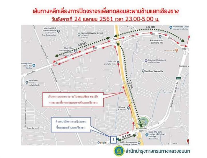 ปิดสะพานบ้ามแยกเชียงขาง! 24 เมษา61 ช่วงเวลา23.00-05.00น.