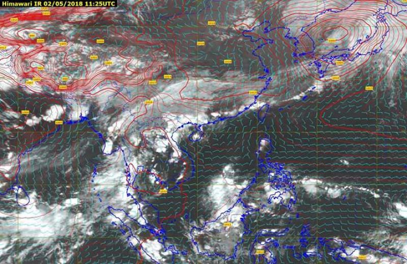 รายงานการติดตามสภาวะอากาศเมื่อเวลา 19.00 น (วันพุธที่ 2 พฤษภาคม พ.ศ. 2561)
