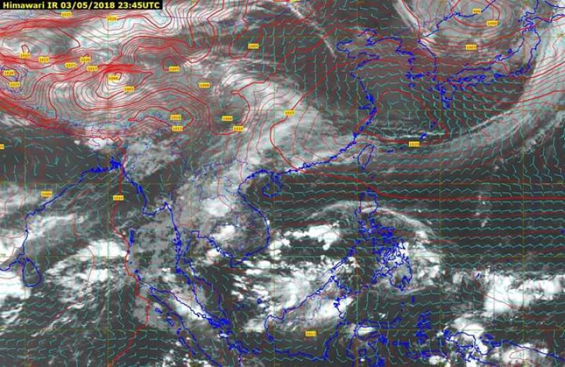 รายงานการติดตามสภาวะอากาศเมื่อเวลา 07.00 น (วันศุกร์ที่ 4 พฤษภาคม พ.ศ. 2561) ภาคเหนือ : มีเมฆมาก ส่วนมากเป็นเมฆชั้นต่ำ และเมฆฝนฟ้าคะนอง ตรวจพบกลุ่มฝนบริเวณ จ.เชียงราย เชียงใหม่ ลำพูน ลำปาง ตาก อุตรดิตถ์ สุโขทัย พิจิตร พิษณุโลก กำแพงเพชร และเพชรบูรณ์ ลมตะวันตกเฉียงใต้ ความเร็ว 10 25 กม./ชม. http://www.sattmet.tmd.go.th/satmet/monitoring/monitoring.html