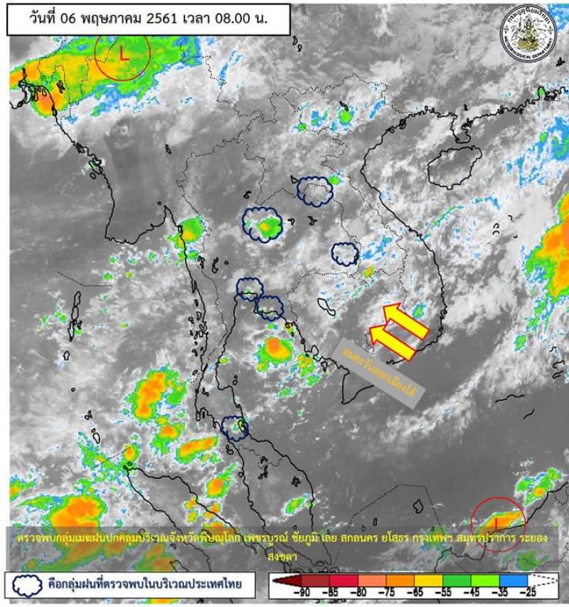 บริเวณภาคเหนือยังคงมีฝนฟ้าคะนองเกิดขึ้นได้ในระยะนี้ ขอให้ประชาชนระวังอันตรายจากฝนที่ตกสะสมไว้ด้วย ลักษณะสำคัญทางอุตุนิยมวิทยา คลื่นกระแสลมตะวันตกเคลื่อนเข้าปกคลุมภาคเหนือ และภาคตะวันออกเฉียงเหนือตอนบน ประกอบกับมีลมใต้และลมตะวันออกเฉียงใต้พัดปกคลุมภาคกลาง ภาคตะวันออก และภาคใต้ ลักษณะเช่นนี้ทำให้ภาคเหนือยังคงมีฝนฟ้าคะนองเกิดขึ้นได้ในระยะนี้ ส่วนมากเป็นตอนล่างของภาค