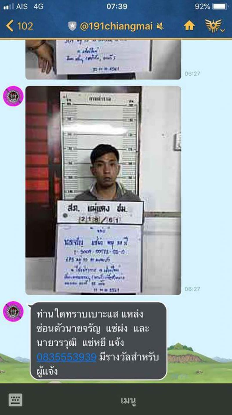 ท่านใดทราบเบาะแส แหล่งซ่อนตัวนายจรัญ แซ่ผ่ง และนายวรวุฒิ แซ่หยี แจ้ง 0835553939 มีรางวัลสำหรับผู้แจ้ง,/// เครดิตข่าว line. @191chiangmai