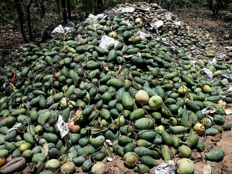 วันนี้ ผู้ใช้งานเฟสบุ๊คดวงกมล ซุยหลวง ได้โพสต์ภาพ กองมะม่วงจำนวนมากกองใหญ่ ถูกนำมาเททิ้งที่ ข้างทางที่จะขึ้นไปอ่างห้วยฝาง บ้านสันตับเต่า อ.บ้านโฮ่ง จ.ลำพูน ซึ่ง ราคา(ปลีก) มะม่วง ณ ปัจจุปันนี้ ประจำวันที่ 20 พฤษภาคม 2561 เป็นดังนี้