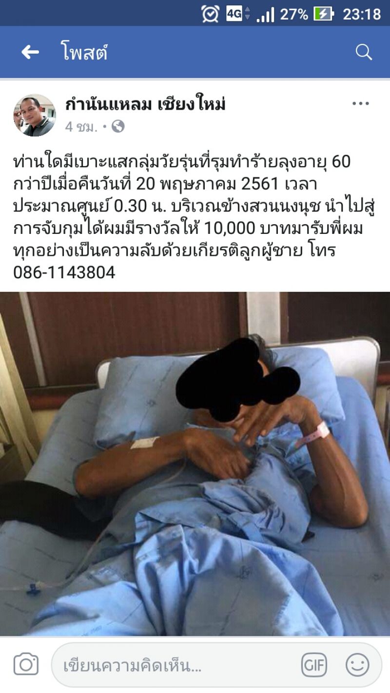 ตามหากลุ่มวัยรุ่นรุมทำร้ายคุณลุงข้างสวนนงนุช มีรางวัลให้ 10000 บาท โทร 086-1143804