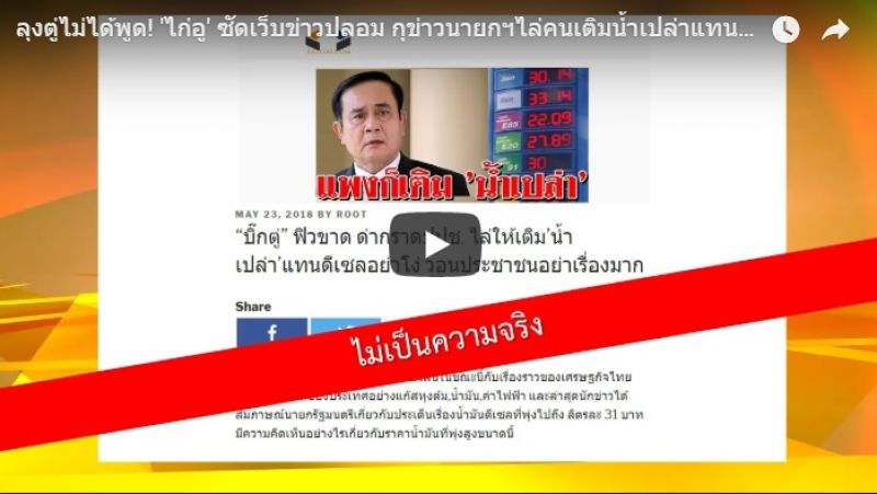 | • แจง! นายกฯ ไม่เคยพูดให้ประชาชนเติมน้ำเปล่าแทนน้ำมัน |