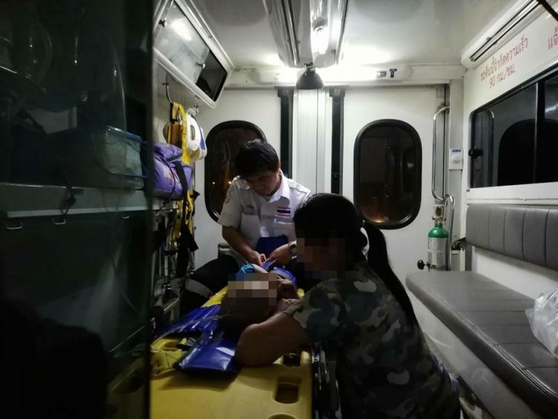 เจ้าหน้าที่ได้ข้อมูลทางญาติ(แม่ของเด็ก) น้องถูกรถทับ ช่วงระหว่างกลางลำตัว เนื่องจากรถกะบะ ได้ถอยออกมาไม่เห็นน้อง เลยทับน้องช่วงลำตัว เจ้าหน้าที่ได้ตรวจสอบร่างกายเบื้องต้นไม่มีบาดแผลภายนอก เจ้าหน้าที่กู้ชีพกู้ภัยดอกข่า ได้ปฐมพยาบาลเบื้องต้น แล้วรีบนำส่งโรงพยาบาลฝาง ทำการรักษาต่อ