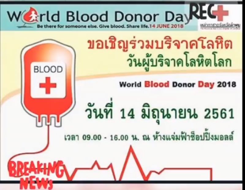 | • 14 มิถุนา เชิญชาวลำพูนบริจาคเลือด ณ แจ่มฟ้า เวลา 09.00 - 16.00 น. |