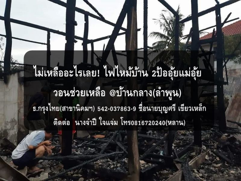 | • ไม่เหลืออะไรเลยไฟไหม้บ้าน 2ป้ออุ้ยแม่อุ้ย วอนช่วยเหลือ @บ้านกลาง(ลำพูน) #มีบัญชีช่วยเหลือ |