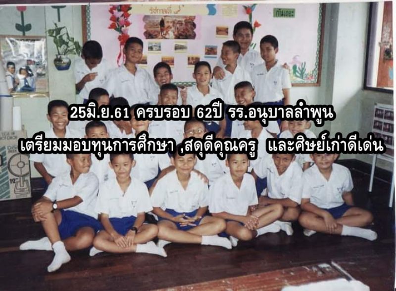 25มิ.ย.61 ครบรอบ 62ปี รร.อนุบาลลำพูน เตรียมมอบทุนการศึกษา ,สดุดีคุณครู และศิษย์เก่าดีเด่น