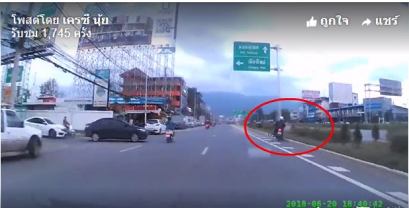 คลิป วินาที จยย. ชนเกาะกลาง เสียชีวิต หน้าโลตัสคำเที่ยง