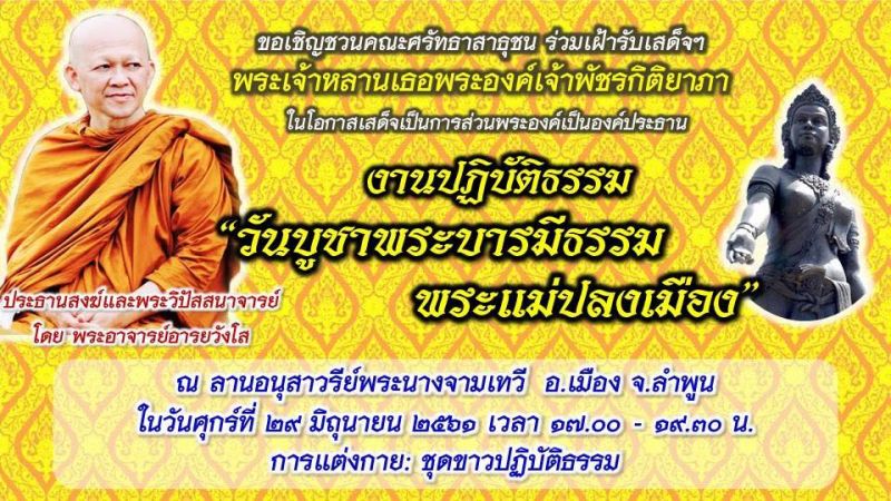 | • เชิญ ปชช. รับเสด็จ พระเจ้าหลานเธอ พระองค์เจ้าพัชรกิติยาภา 29- 30มิถุนา61 ณ วัดป่าพุทธพจน์หริภุญไชย(ลำพูน) |