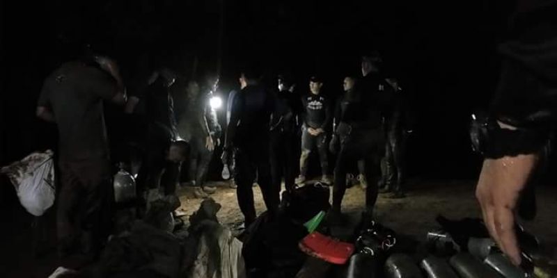 รับแจ้งจาก น.ท พิชัยยุทธ ปาจะกัง หน.ยก.ขว.นรข เขต ชร ว่าตอนนี้ ชุดชิลได้ถอนกำลังการค้นหาเนื่องจากอุปสรรคน้ำขึ้น และเขือกช่วยชีวิตหมด รวมถังออกชิเจน หลังสำรวจห้องโถงขึ้นไปพบรอยเท้าหลายจุดและเชือกช่วยชีวิตใหม่ คาดว่าจะอยู่แถวนั้นแต่น้ำขึ้นสูงพอดำจะโผล่ชนเพดาน เลยถอยออกมาก่อนเพื่อวางแผนการทำงานใหม่ ตอนนี้ชุดสนับสนุนดำเนินการติดไฟฟ้าแสงสว่าง และจะเริ่มสูบน้ำออก บดระดับน้ำ สจ อนุภาส รายงาน