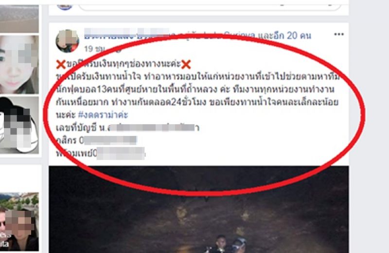 งดบริจาคบัญชีเงินเพื่อช่วย ค้นหา 13ผู้สูญหาย ในถ้ำนางนอน อ.แม่สาย จ.เชียงราย เนื่องจาก ไม่สามารถตรวจสอบได้