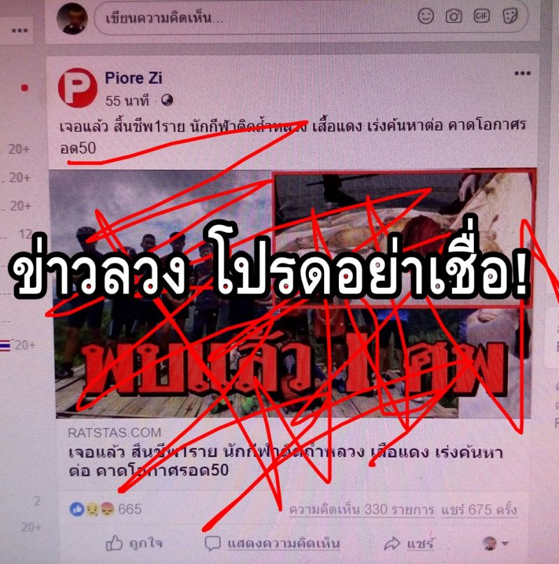 หลังจากมีการค้นหา 13ผู้สูญหาย ที่ถ้ำหลวง อ.แม่สาย จ.เชียงราย  ผ่านมาหลายวัน   และ ได้มีเพจ/เว็บ ที่ได้ออกข่าวลวง เพื่อหวังผลในการเข้าชมและคลิ๊ก  โปรดให้สังเกตุชื่อเว็บ และ ชื่อเฟสบุ๊ค ในการพิจารณา
