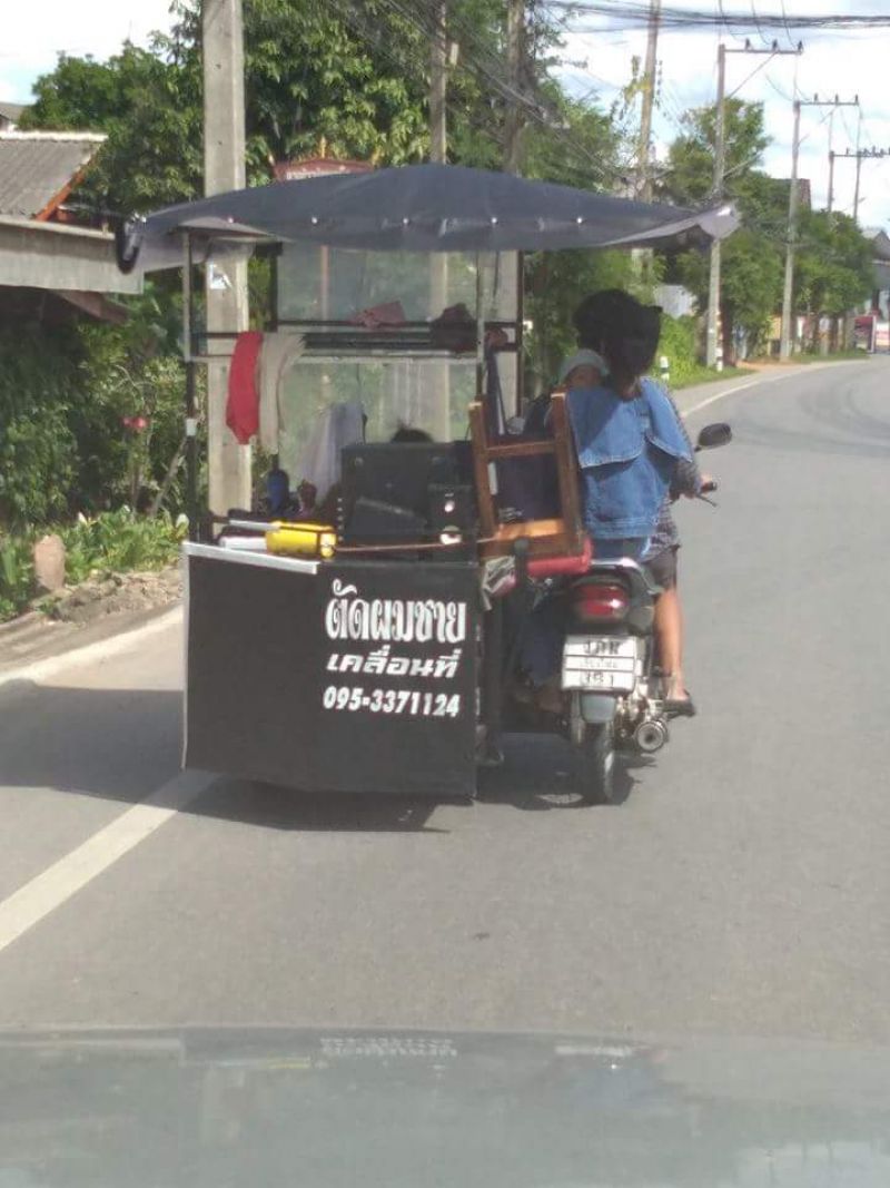 วันนี้สมาชิกกลุ่มฮาฮักลำพูนได้โพสต์เรื่องราวที่น่าประทับใจ และน่าสนับสนุน ก็คือ ภาพ รถตัดผม เคลื่อนที่ โดยบนรถพ่วงนั้น มีสองสามีภรรยา พร้อม ลูกตัวน้อย อีก 2คนซึ่งผู้ถ่ายภาพ ได้แจ้งว่า พบในพื้นที่อำเภอป่าซาง จังหวัดลำพูน