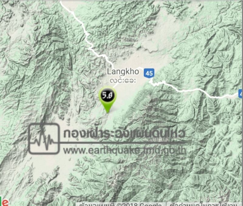 แผ่นดินไหว 1 ก.ค. 2561 เวลา 22:10 น. ประเทศพม่า ขนาด 5.0 ทางทิศตะวันตกเฉียงเหนือของ อ.ปางมะผ้า จ.แม่ฮ่องสอน ประมาณ 88 กม. ได้รับรายงานรู้สึกสั่นไหวถึง จ.เชียงใหม่ http://bit.ly/2tTiiIc www.earthquake.tmd.go.th