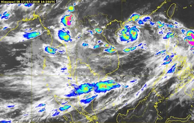 รายงานการติดตามสภาวะอากาศเมื่อเวลา 22.00 น (วันอังคารที่ 17 กรกฎาคม พ.ศ. 2561) ภาคเหนือ : มีเมฆเต็มท้องฟ้า ส่วนมากเป็นเมฆชั้นต่ำและเมฆฝนฟ้าคะนอง ตรวจพบกลุ่มฝนกระจายทั่วทั้งภาค ลมตะวันตกเฉียงใต้ ความเร็ว 15-30 กม./ชม. http://www.sattmet.tmd.go.th/satmet/monitoring/monitoring.html