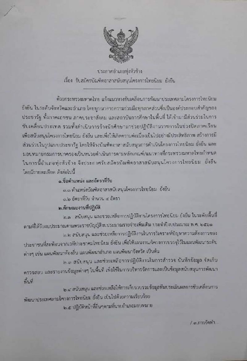 อ.ทุ่งหัวช้าง(ลำพูน) รับสมัครบัณฑิตอาสาฯ 4อัตรา เงินเดือน 12,000