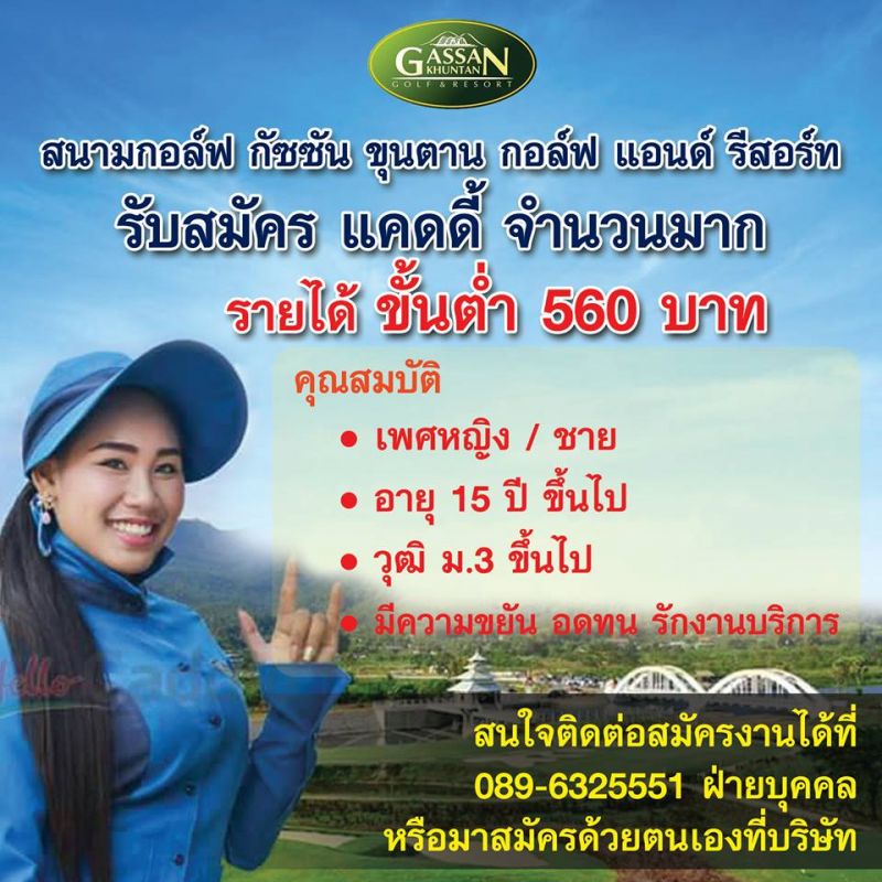 สนามกอล์ฟกัซซัน ขุนตาน รับสมัครแคดดี้ รายได้ขั้นต่ำ 560++