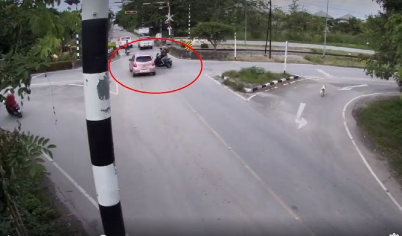อุทาหรณ์ คลิป จยย. ชนกับ เก๋ง แยกข้ามทางรถไฟ @สารภี เชียงใหม่