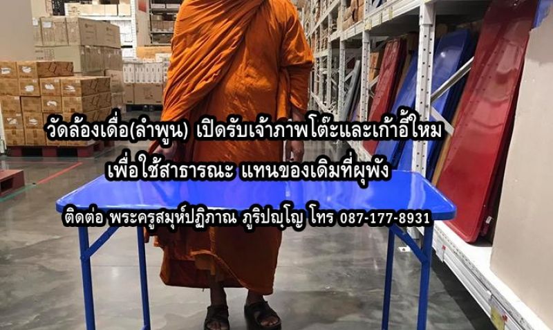 วัดล้องเดื่อ(ลำพูน) เปิดรับเจ้าภาพโต๊ะและเก้าอี้ใหม่ เพื่อใช้สาธารณะ แทนของเดิมที่ผุพัง