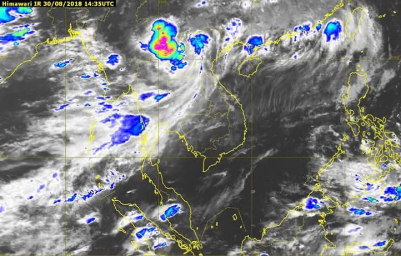 รายงานการติดตามสภาวะอากาศเมื่อเวลา 22.00 น (วันพฤหัสบดีที่ 30 สิงหาคม พ.ศ. 2561)